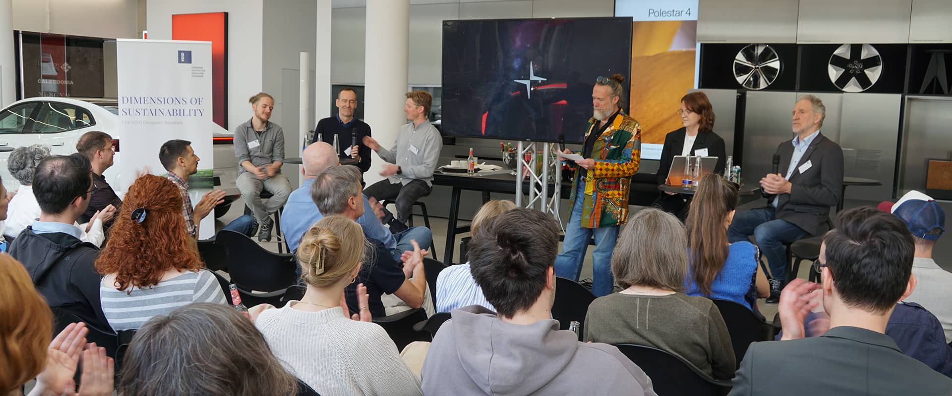 In einer lebhaften Podiumsdiskussion wurden drängende Fragen wie die Definition und Existenz von „nachhaltigen“ Produkten, der Einfluss von Design auf die Nachhaltigkeit von Produkten und Ökosystemen sowie die Denkweisen und Prozesse, die für die Entwicklung von umweltfreundlichen und wirtschaftlich tragfähigen Produkten und Dienstleistungen notwendig sind, diskutiert.