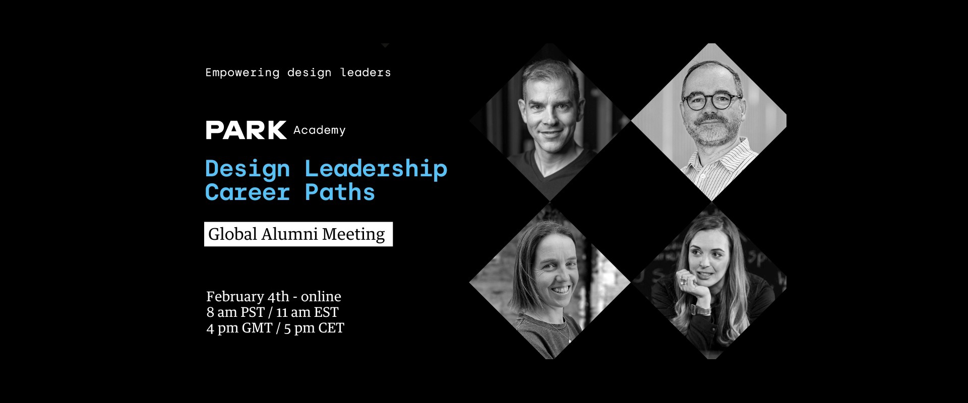 Subtheme: Real stories of challenge, change, and career growth from Academy Alumni guest speakers. Four different journeys, one shared mission - advancing design leadership.