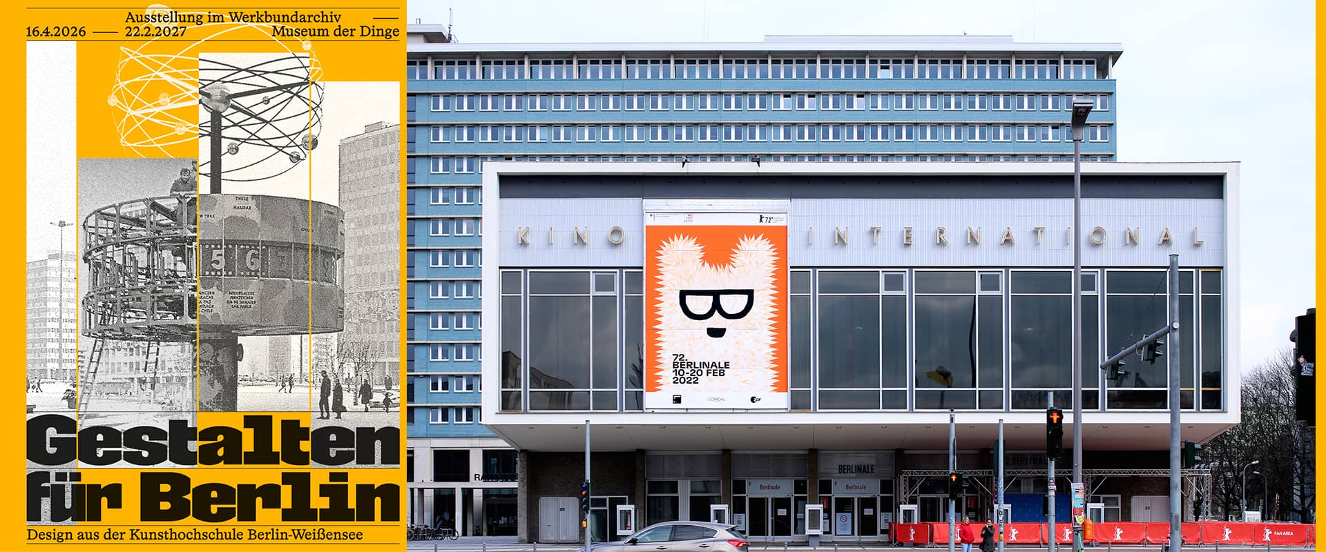 Ob Berlinale-Plakat oder der Schriftzug für das Kino International, U-Bahn oder Fahrrad, Weltzeituhr oder klimaschützende Fassaden, Brandwände oder Bühnenplakate: Generationen von Studierenden, Lehrenden und Absolvent*innen aus Weißensee gestalten Berliner Stadträume, Kultur und Mobilität, kurz: den Berliner Alltag.