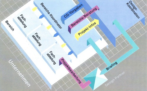 Unser Prinzip ist dabei, die erforderlichen Entwicklungsprozesse im Sinne der Kostenökonomie weitgehend mit den Kräften des Auftraggebers zu organisieren, um somit besonders die Integration kreativer Dienstleistungen möglichst effizient zu gestalten.